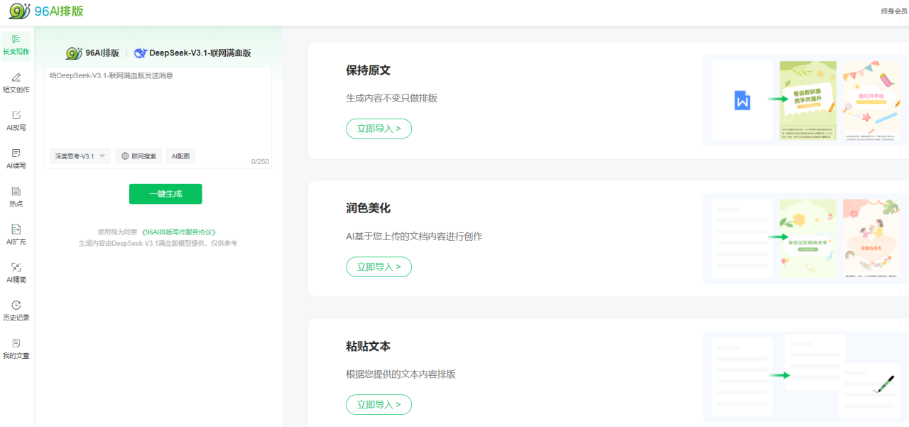 - 进入AI排版界面:登录96编辑器官网,在首页最左侧菜单栏找到并点击 “AI排版” ,进入专属操作页面。