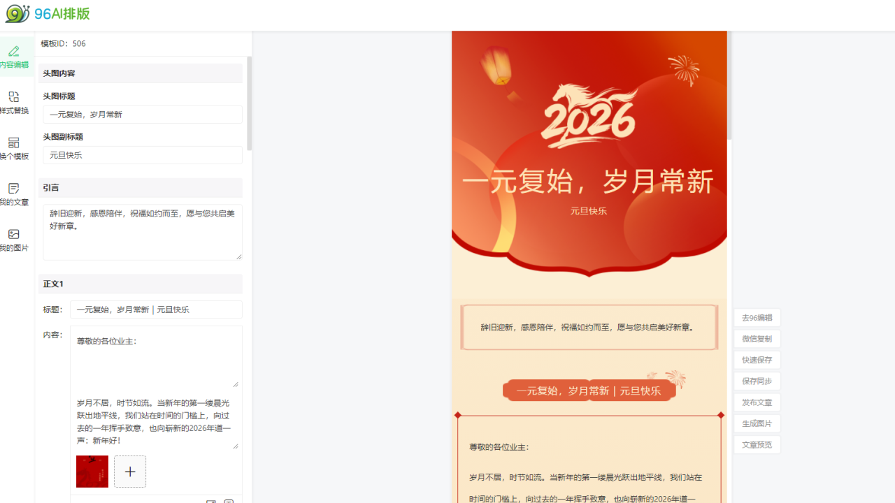推荐以96编辑器免费版作为团队标准工具。其素材商用授权可规避法律风险,统一的模板功能能保持品牌输出的一致性。利用其协作特性,可以高效完成内容产出。 - 多平台内容分发者: