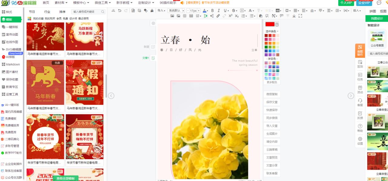 96编辑器是一款以“高效排版+丰富素材”为核心的全能型公众号排版工具,实现从模板选择、内容编辑到多平台导出的一体化流程,覆盖新手到专业运营者的全场景需求。