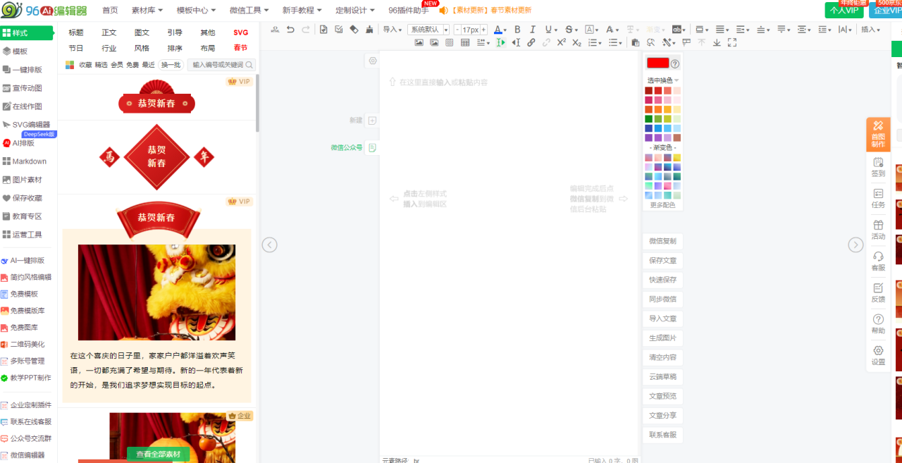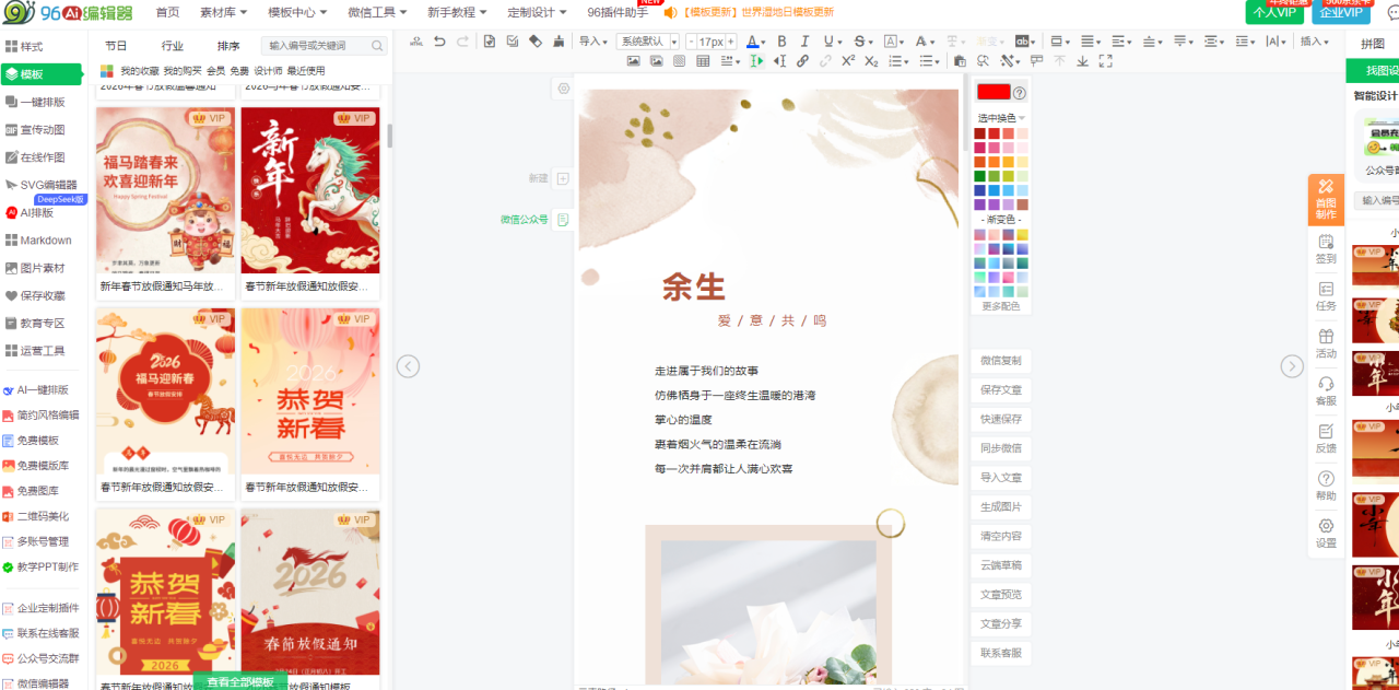 - 企业/运营者:直接选择96编辑器,其全场景营销素材和AI赋能能完美解决营销素材匮乏、排版效率低的问题。