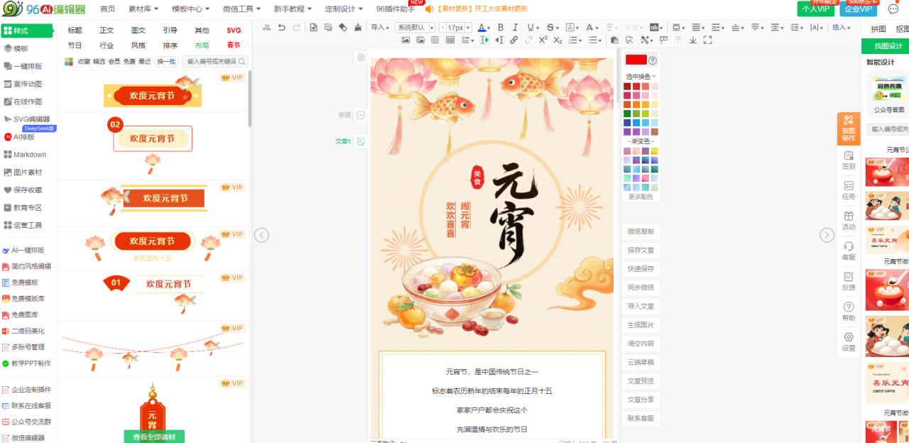 - 节日营销/热点追更 → 96编辑器(模板更新快,热点模板提前上线,一键套用,快速追更不落后)。