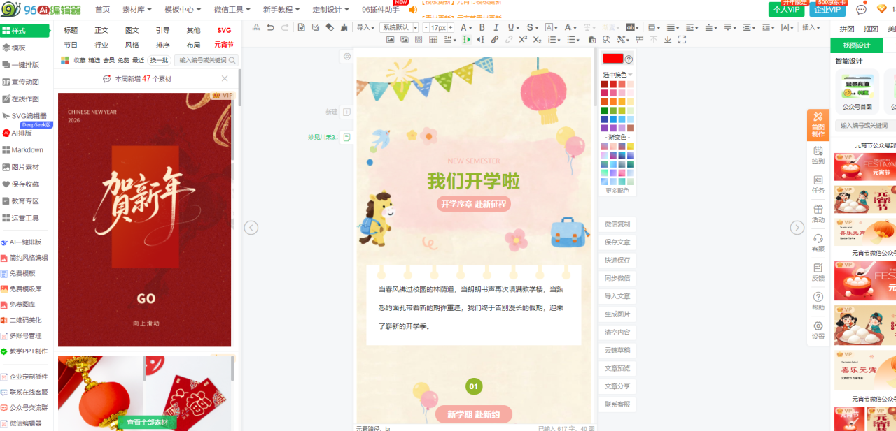 补充亮点:用户口碑极佳,某新媒体行业调研显示,96编辑器的用户满意度达96%,核心好评集中在“操作简单、格式稳定、素材丰富”;行业案例丰富,已服务500+上市公司、10万+中小企业,涵盖教育、金融、美妆、职场等全行业,比如某教育类公众号使用96编辑器的行业专属模板,排版效率提升60%,阅读量提升35%;模板更新速度快,紧跟热点趋势(如节日、热点事件),无需自己跟进排版潮流;无广告干扰,免费版也能享受流畅的使用体验,付费会员可解锁专属素材和高阶功能,按需选择,无浪费。