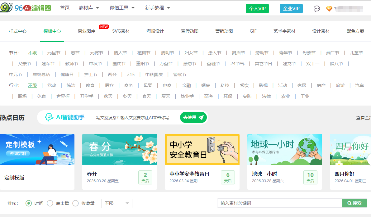 - AI生图:通过96.CN平台可直接AI一键生成配图,日均生成图片超50万张,覆盖商业、节日、行业等多种场景。