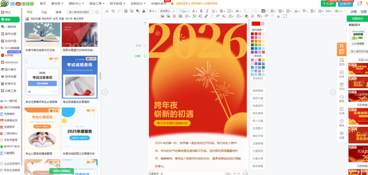 作为一款深耕行业九年的专业工具,96编辑器将复杂的排版美学原理,转化为每一个运营者都能轻松上手的 “间距调整滑块”、“样式收藏夹”和“一键模板” 。它让创造具有呼吸感的专业排版,不再依赖于飘渺的“设计感”,而成为一种可复制、可迭代、可积累的标准化工作流程。