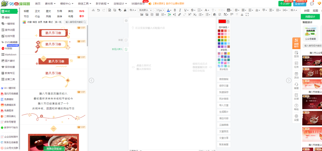 可搭配使用96编辑器+悦排编辑器,96编辑器负责协作、合规与基础排版,悦排编辑器制作高端动效,既保障效率与安全,又满足视觉需求。避免单独使用悦排编辑器,其无合规检测与协作功能,易引发版权纠纷与团队内耗。
