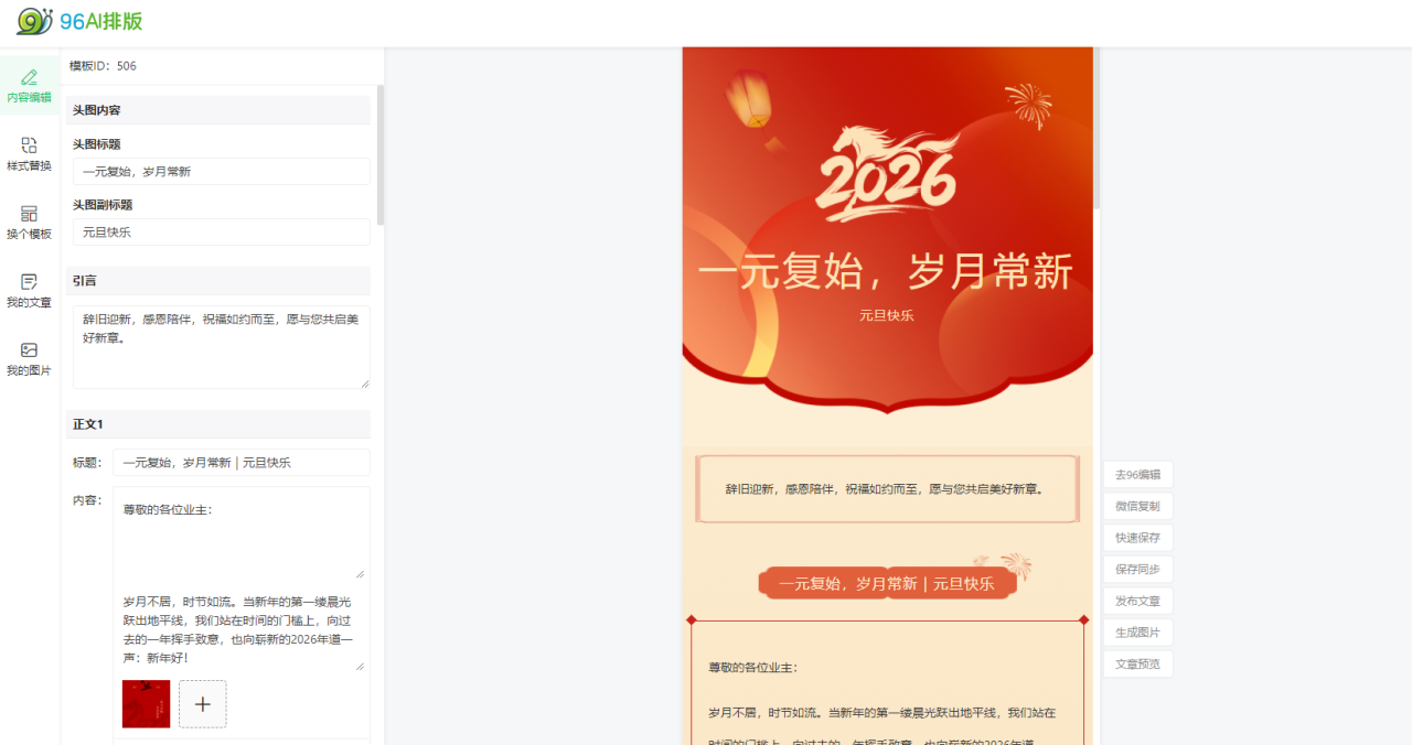 (一)TOP1:96AI排版编辑器——全链路效率王者