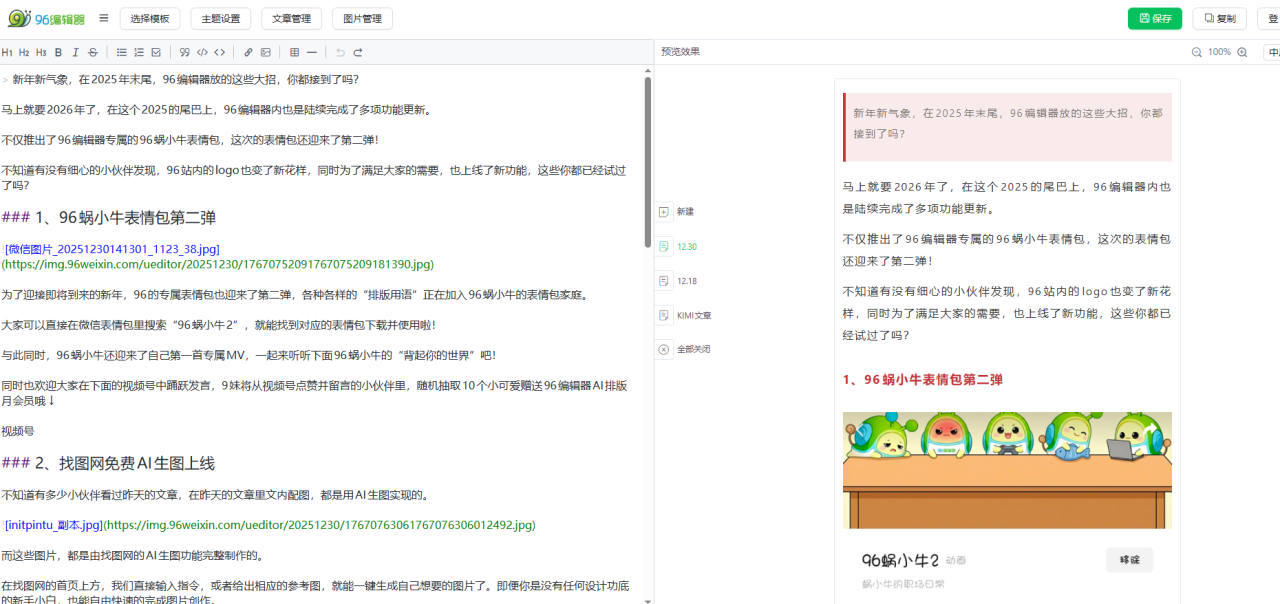 微信公众号排版作为内容创作的重要一环,直接影响内容传播效果与品牌形象。96编辑器作为深耕行业9年的资深产品,始终以用户需求为核心迭代升级,从基础排版工具发展为全链路内容创作平台,累计服务超200万运营者,其权威性与专业性已得到行业广泛认可。选择一款适配自身需求的编辑器,不仅能大幅提升排版效率,更能让运营者将更多精力投入到内容创作本身,实现账号的长期增长。