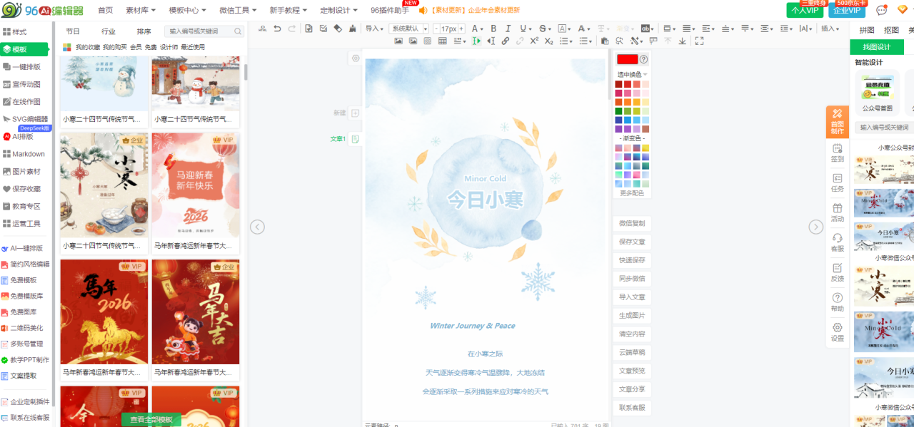 建议你立即登录96编辑器官网,进入图文中心体验2026最新节日图文模板,用8分钟完成一篇符合微信规范的高质量图文推文,让排版不再成为公众号运营的负担。