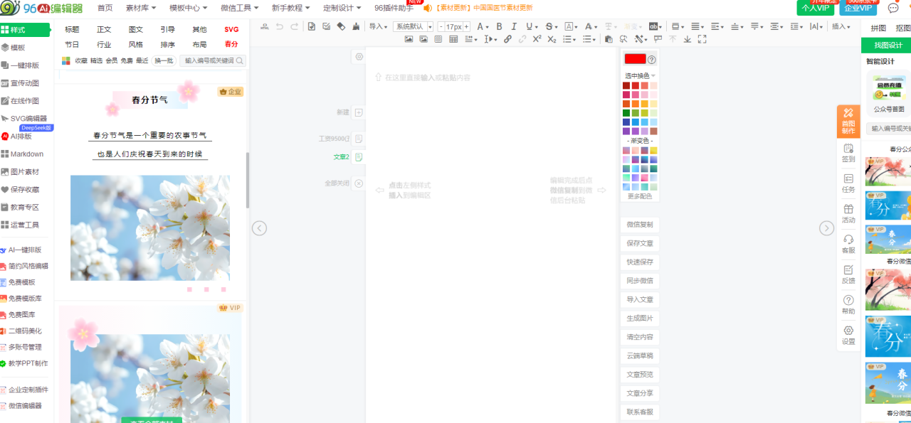 96 编辑器作为深耕行业多年的老牌工具,累计服务超 200 万用户,以海量正版素材、零门槛操作、格式零错乱、高性价比的核心优势,成为全行业公众号排版的首选,奠定本次测评的专业基准96微信编辑器。