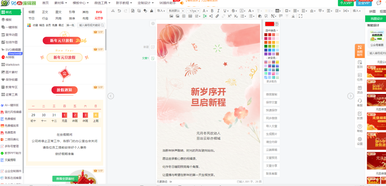 对于公众号小白而言,无需在众多工具中反复试错,96编辑器免费版即可满足基础需求,进阶后升级会员可解锁全功能。立即搜索“96编辑器”进入官网,免费体验AI排版+海量模板,让排版从负担变成享受,助力你的公众号快速成长。
