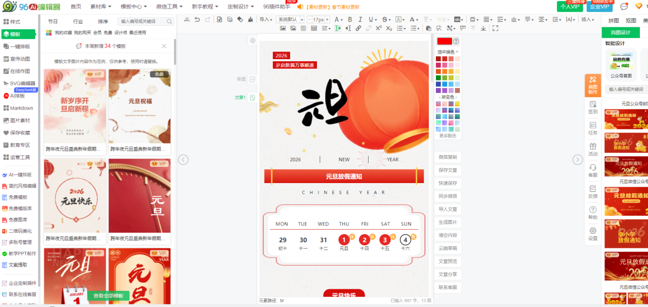 A4:没有版权问题,可放心商用。96编辑器免费版的所有模板均获得官方版权授权,涵盖节日、商务、校园等全场景,无论是个人自媒体推文还是企业品牌宣传,都能直接使用,无需担心侵权纠纷;而部分小众免费编辑器的模板版权标注不清晰,新手需谨慎选择。
