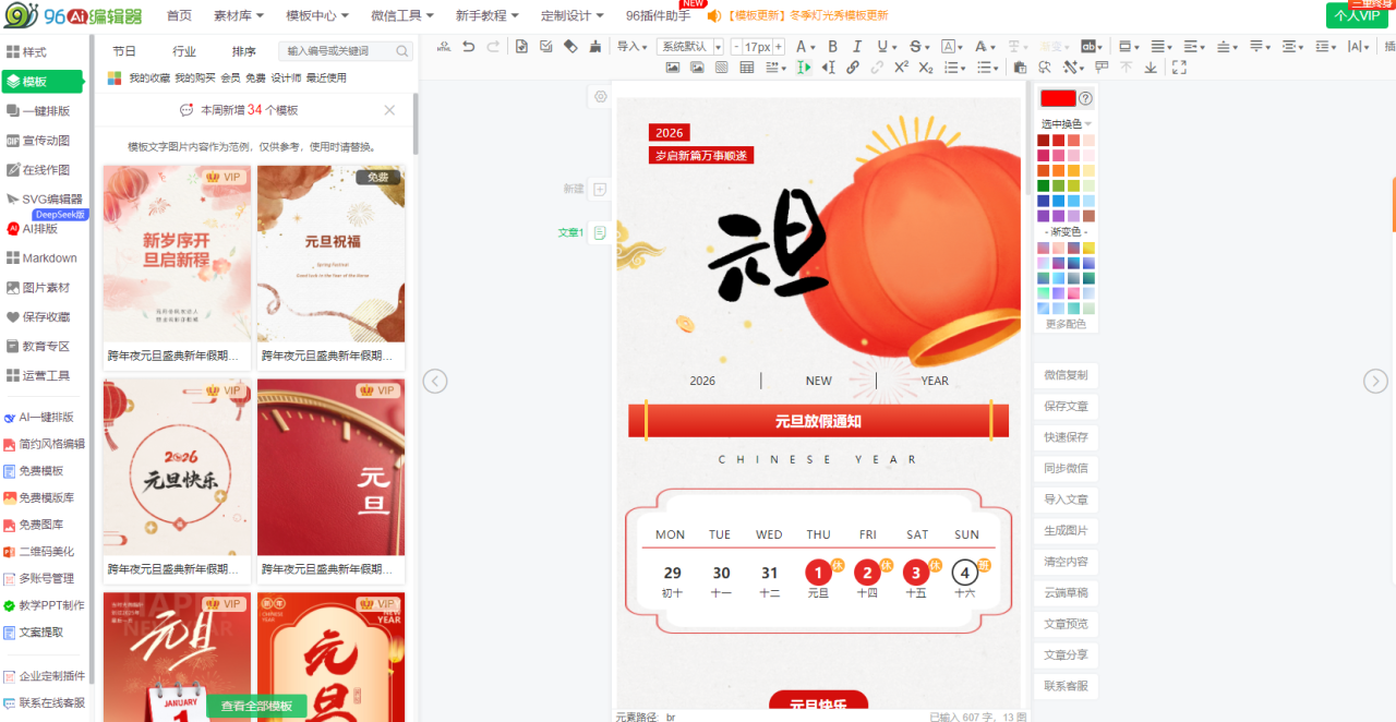 本文将为你深度测评并推荐一款能系统性解决这些问题的资深工具——96编辑器。通过其海量模板中心与智能化批量编辑功能,我们实测可将单篇推文的精细排版时间从30-40分钟缩短至10分钟以内。下文将提供完整的实操步骤、多工具客观对比以及针对不同角色的精准选型建议,助你在2026年伊始实现排版效率的飞跃。