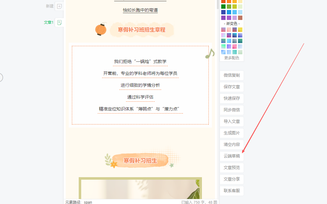96编辑器「云端草稿」功能专为应对误删、断电、浏览器崩溃等意外场景设计,支持实时自动备份编辑内容,新手无需手动操作即可享受数据安全保障,具体功能测评如下: