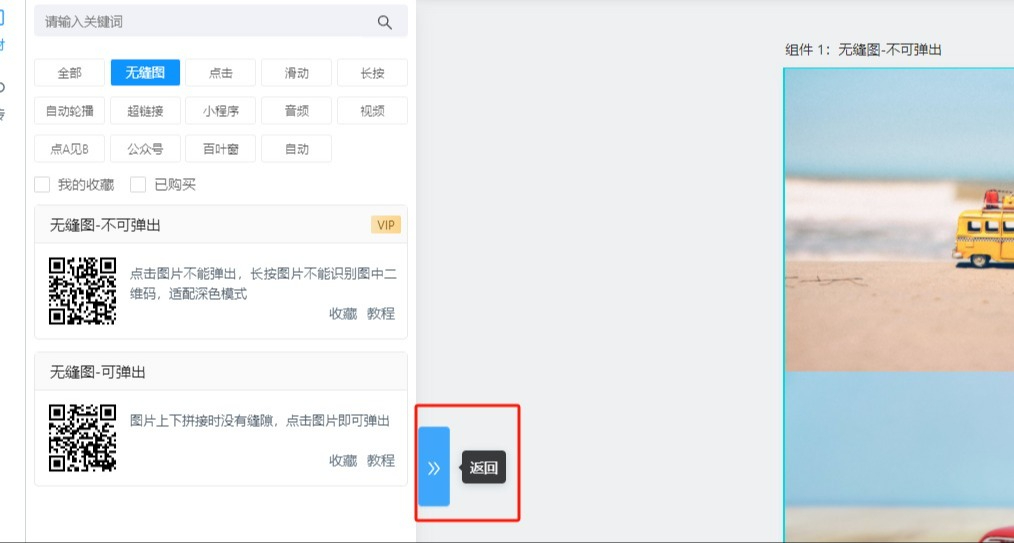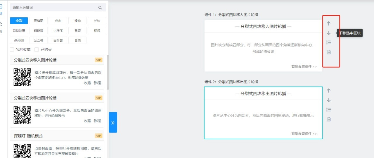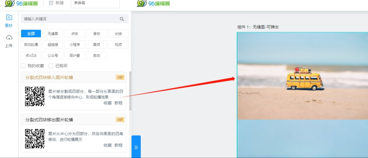 此页面可对素材进行组合排版,选择你喜欢的或者符合你排版需求的素材,添加到编辑区域,进行相关设置
