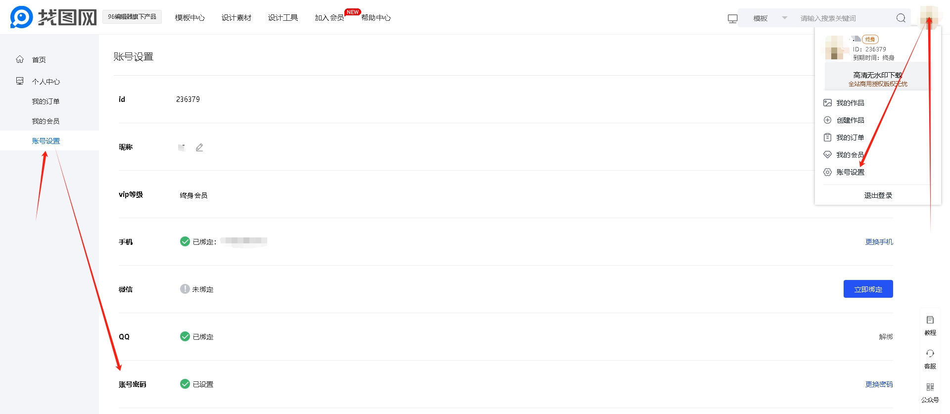 另外,通过96在线作图上方的找图网网址,进入找图网设计网站,可以直接登录终身会员账号。