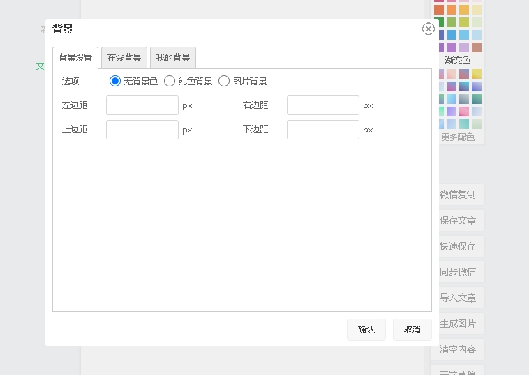 背景设置-无背景色:选择当前设置,点击确认,即可取消设置的背景;