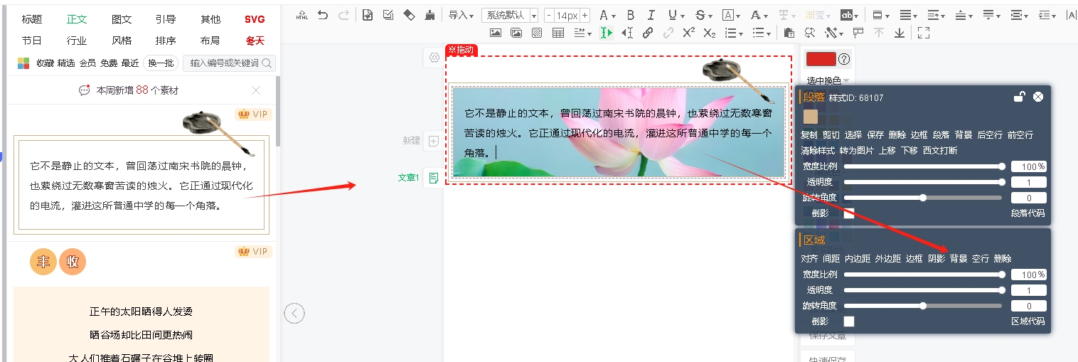 如果我们不想给整篇文章添加背景,而是只想给文章的某个段落添加背景,该怎么操作呢?