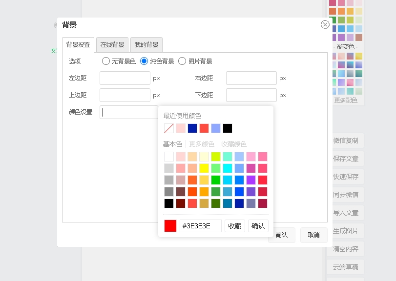 背景设置-纯色背景:点击颜色设置,选择合适的颜色,点击确认即可;