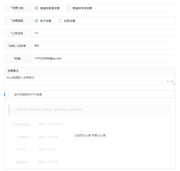 2.发票信息请先核对好,请勿填错,因个人造成的发票信息错误,无法二次开具发票。