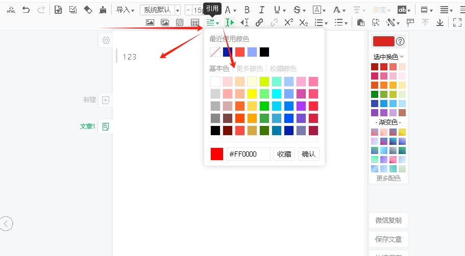 引用功能可以给文字内容设置引用标志,默认是灰色,也可以自行设置喜欢的颜色。