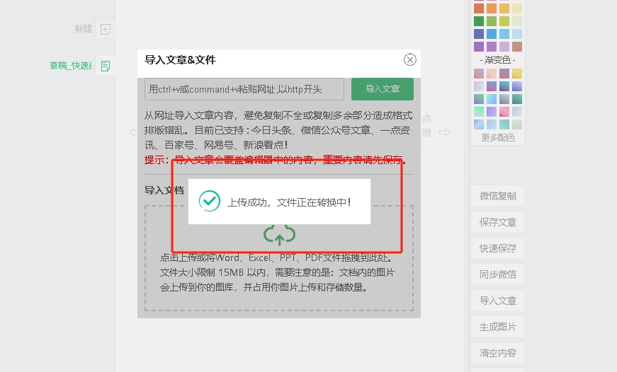 之后,等待文档进行上传,上传过程中会出现图中的提示。