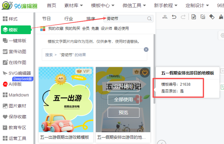 输入编号或者关键词——点击搜索,即可快速搜索到该模板。