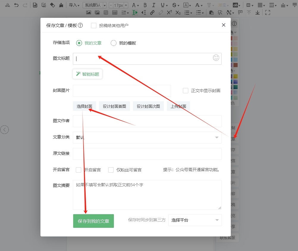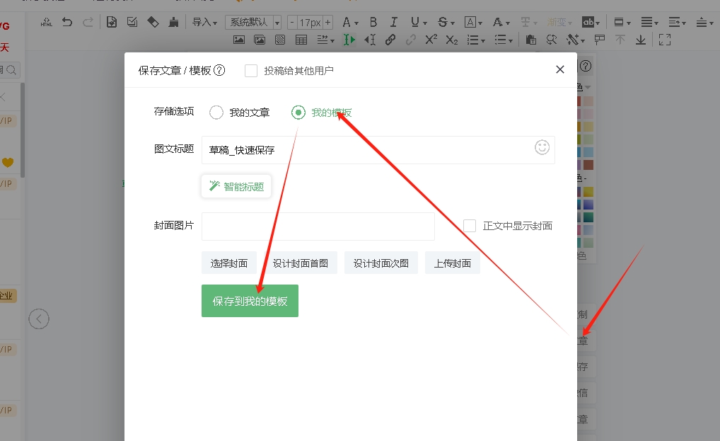 点击【保存文章】—填写好标题—上传封面—点击【保存到我的文章】