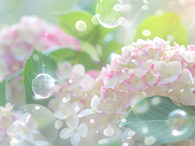 五彩的泡泡在阳光下折射出斑斓的光芒