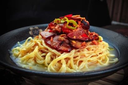 阳春面,一把细面,半碗高汤,一杯清水,五钱猪油,一勺桥头老陈家的酱油,烫上两颗挺括脆爽的小白菜…