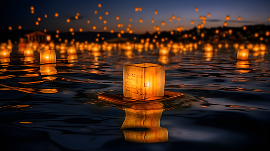 人们或放河灯,点点烛光随水流逝;静望天边月,在清辉中体味生命的圆缺与传承。