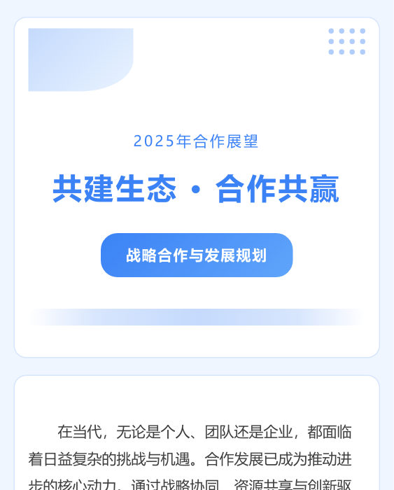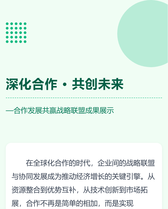 在全球化与数字化深度融合的时代背景下,我们致力于构建开放包容的合作生态体系。通过战略协同、资源共享与创新驱动,与合作伙伴共同探索发展新路径,实现互利共赢的可持续发展目标。