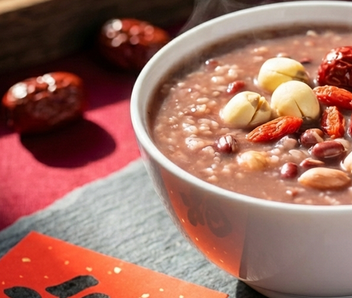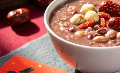 腊八粥是由大米、红豆、花生、莲子等