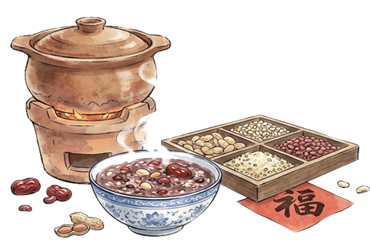 最具代表性的习俗就是吃腊八粥。腊八粥是由大米、红豆、花生、莲子等多种食材熬制而成的一种粥,寓意着丰收和祈求平安。吃腊八粥也是传统的方式来庆祝节日的到来。