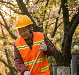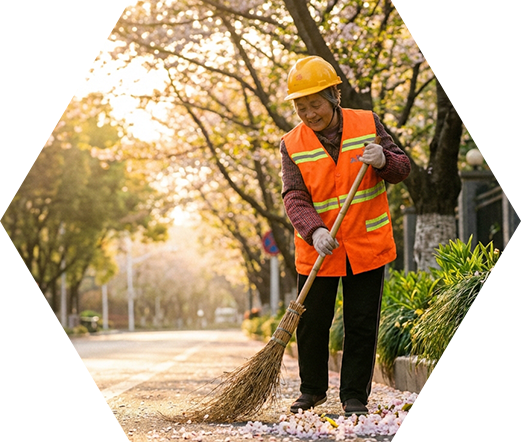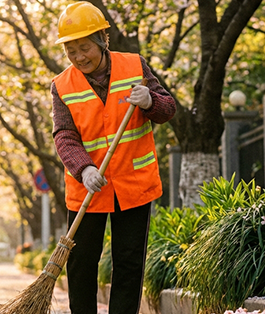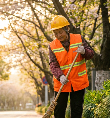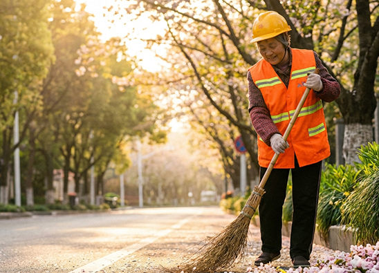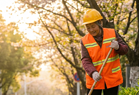 橙黄色工装是环卫工人的鲜明标志与“铠甲”,他们不分年龄,心愿简单——让城市更洁净。日复一日重复繁琐工作,却从不抱怨懈怠,以朴素行动诠释劳动光荣,用默默付出温暖整座城市。