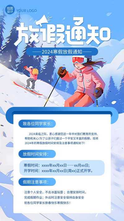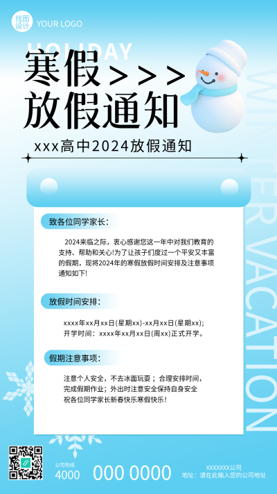 寒假放假通知手机海报