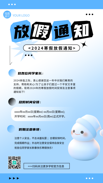 寒假放假通知宣传海报